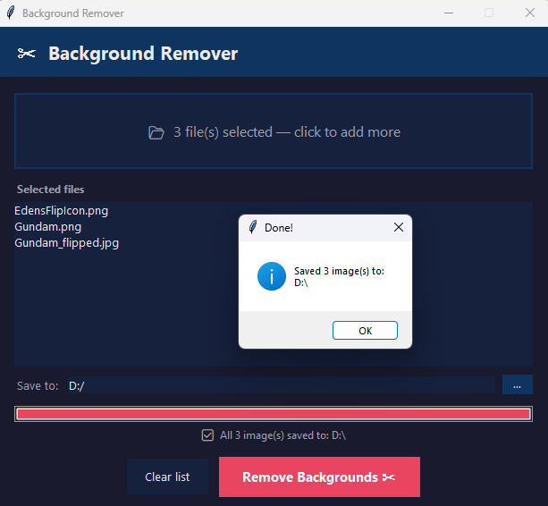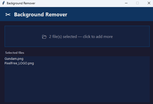 Background removal is powered by u2net, a locally-run AI model included with the app. No images are sent to any server — all processing happens on your machine.